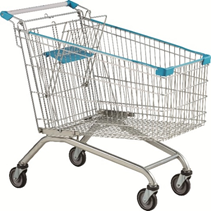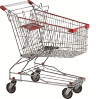 We offer shopping trolleys in 60, 100, 125, and 150 Litre capacities, with plastic parts available in Orange and Red colors.